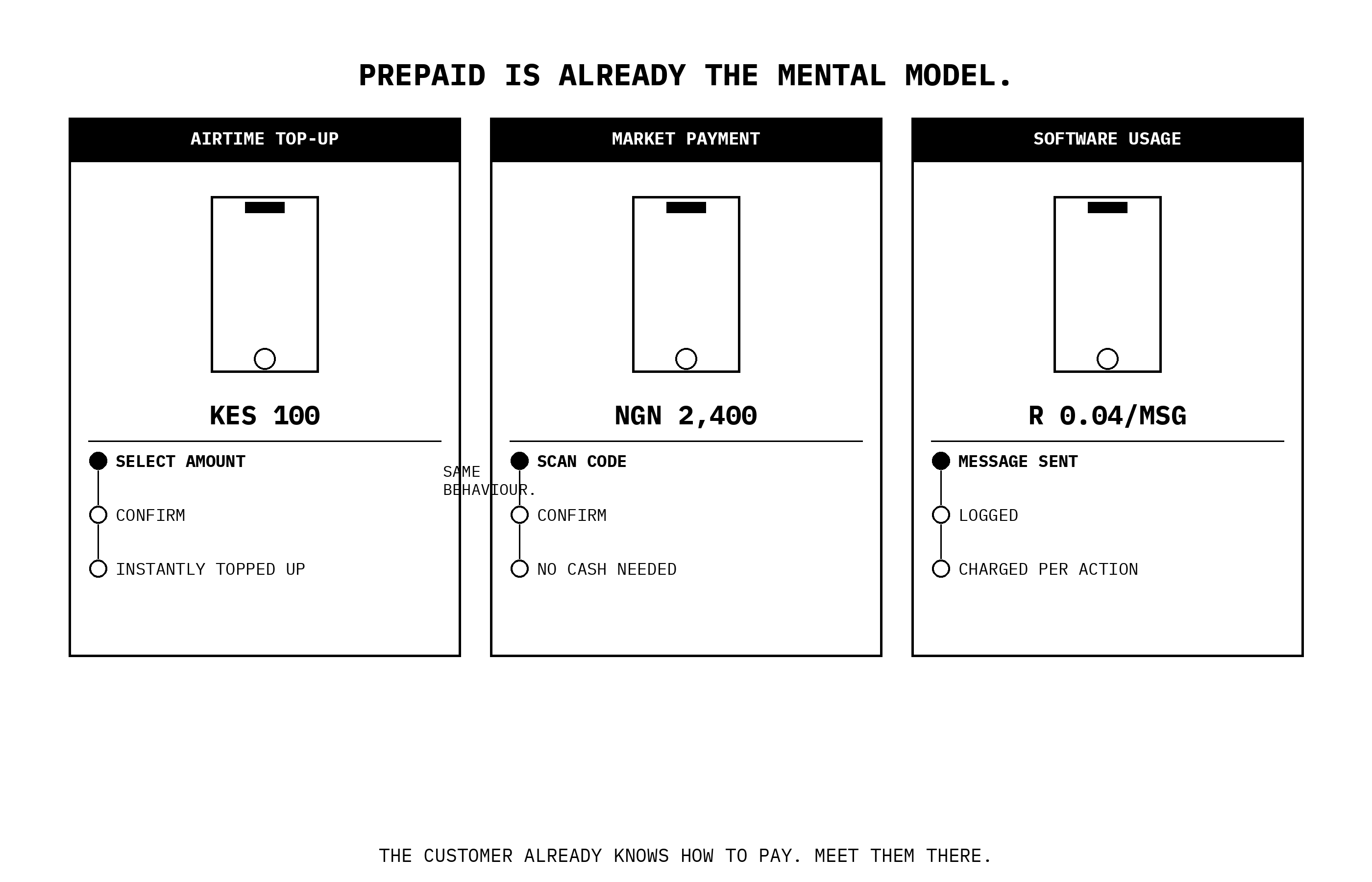 We switched to pay-per-usage, and the resistance dropped almost immediately, not because we discounted anything or rebuilt the product, but because the mental model already existed in that market. These owners were already transacting daily with Flash, Shop2Shop, MamaMoney, and HelloPaisa. Pay for what you use, top up when you need more, and stop when you do not. That is just how commerce works at that level of the economy, and all we had to do was price our product the same way instead of forcing a subscription model onto people who had never operated that way in their lives.