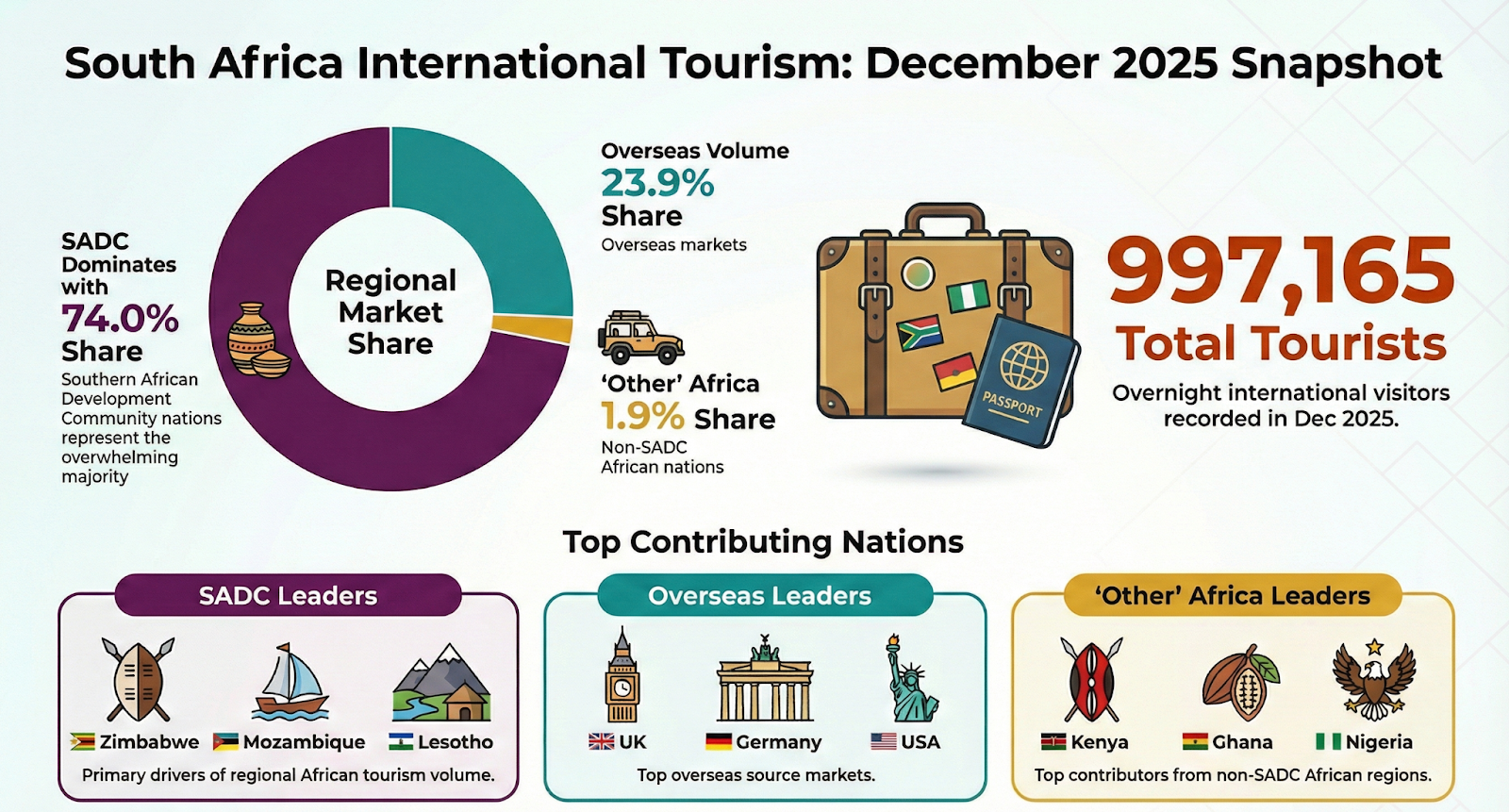 In 2025, South Africa moved an entire subcontinent’s worth of people. The country welcomed a staggering 10.48 million international arrivals. To put that in perspective, that is nearly equal to the combined populations of Namibia, Botswana, Lesotho, Gabon, and the Seychelles.
